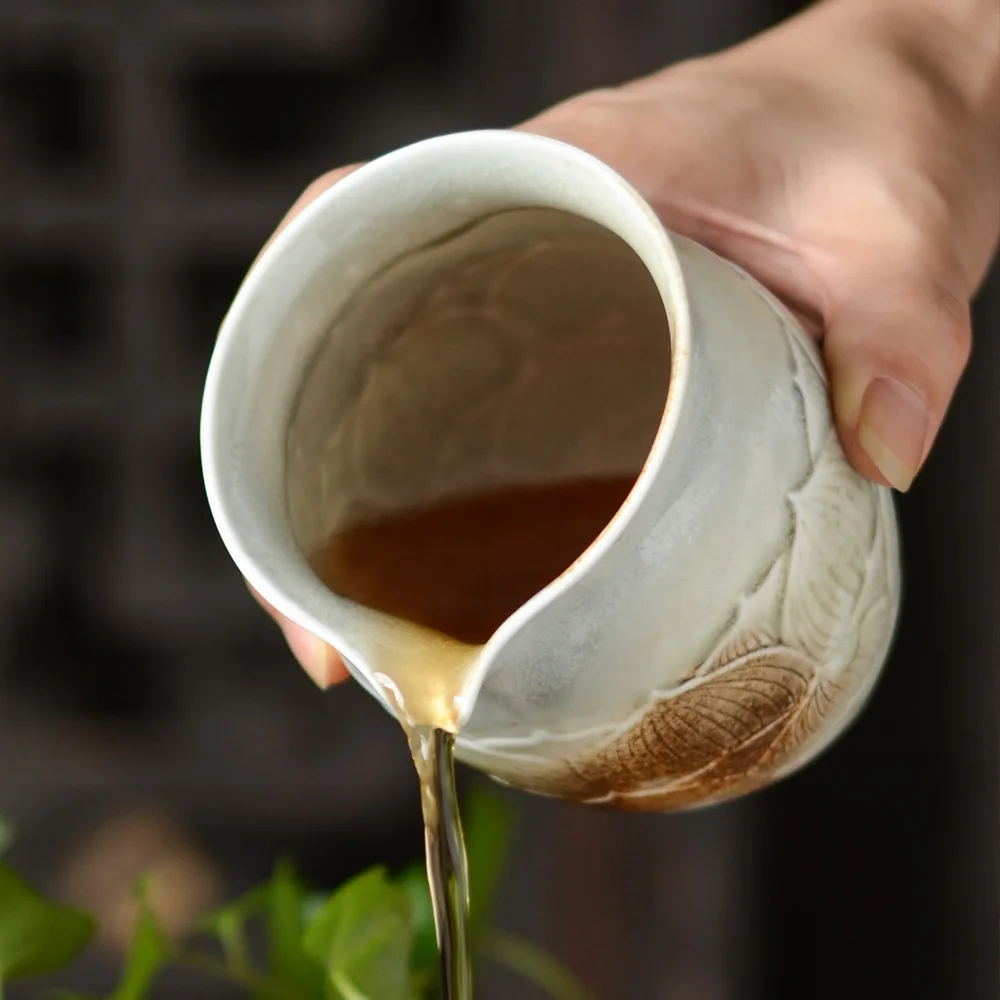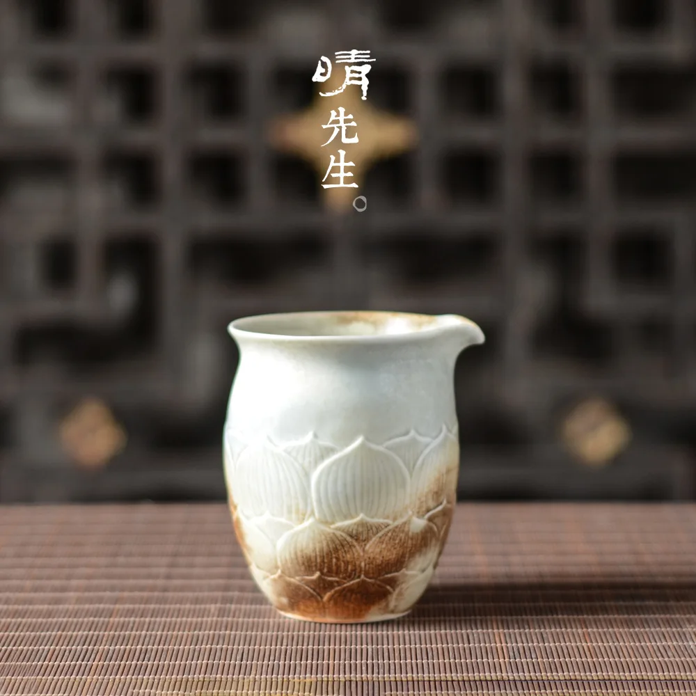 BEST QUALITY Jindezhen Fair Cup Manual Make Carving Lotus Wood Color Fair Cup Part Tea Utensils Tea Ceremony Par