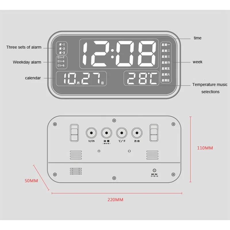 Calendar Temperature Mirror Watch Luminous Electronic Nixie Clock of Home Decora LED Large Number D