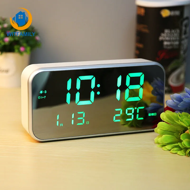 BEST QUALITY Calendar Temperature Mirror Watch Luminous Electronic Nixie Clock of Home Decora LED Large Number D